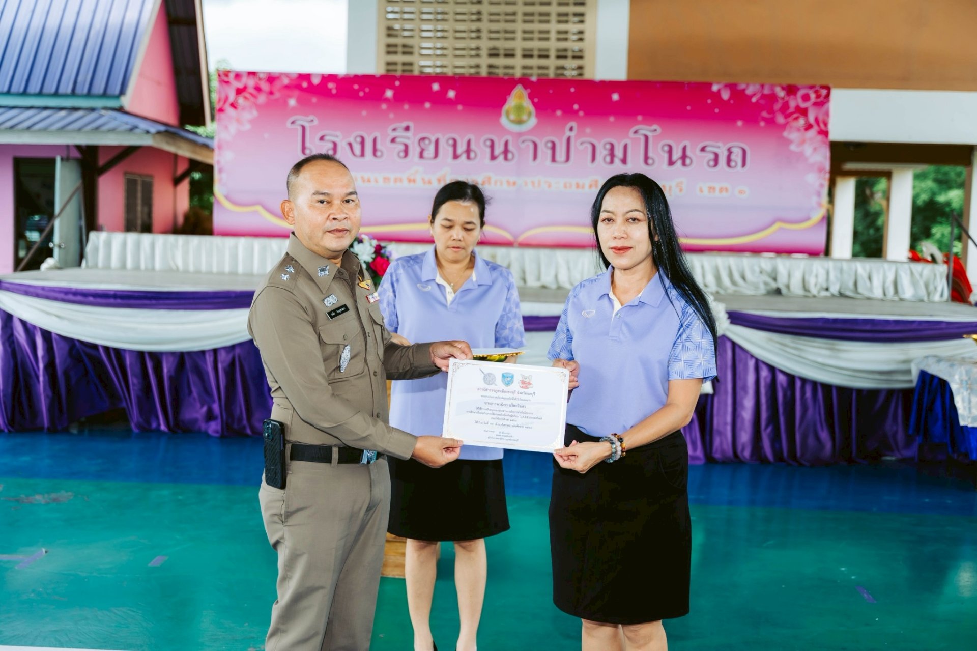 วันที่ ๑ ตุลาคม ๒๕๖๘...วันนี้..พันตำรวจโท สมัย ขันสุวรรณา สารวัตรป้องกันปราบปรามสถานีตำรวจภูธรเมืองชลบุรี ประธานในพิธี พร้อมด้วย จ่าสิบตำรวจธรรมนูญ ภูแดนแจ้ง, สิบตำรวจโททศพล พรรณาเหนือ (ครูตำรวจ D.A..R.E) ได้มาจัดกิจกรรมตอบคำถามและมอบรางวัล รวมทั้งมอบประกาศนียบัตร โครงการการศึกษาเพื่อต่อต้านการใช้ยาเสพติดในเด็กนักเรียน (D.A.R.E.ประเทศไทย) ให้กับคณะครู/บุคลากร และนักเรียนชั้นประถมศึกษาปีที่ ๕ ที่สำเร็จหลักสูตร D.A.R.E. ประจำปีการศึกที่ ๑/๒๕๖๘ จำนวน ๒๙ คน...คณะครู นักเรียน โรงเรียนนาป่ามโนรถ ขอขอบคุณมา ณ โอกาสนี้....ค่ะ...