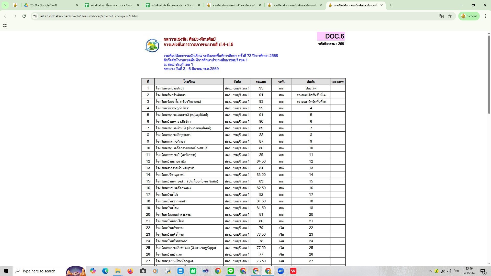 รางวัลเหรียญเงิน การวาดภาพระบายสี ป.1-3 และ ป.4-6